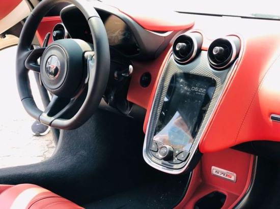 迈凯伦570GT外观采用碳黑色涂装,且车身配备了黑色套件,包括前后分流器,侧裙以及车头两侧大尺寸的进气口,十分炫酷。侧面,新车采用了锻造的双五辐式轮圈,且内部配备了黑色的碳陶瓷制动器。此外,新车车身还采用了大量的碳纤维材质,使车身整体重量得以减轻。
