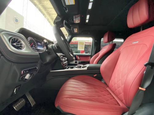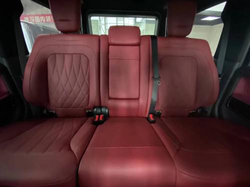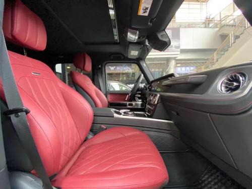 新款奔驰G63提供多种配色内饰,运动型AMG座椅座椅上配有真皮打孔或钻石图案拼接的设计,同时在安全带、手刹以及方向盘等皮质接缝处还采用充满激情的红色缝线加以勾勒,让特别版车型的内饰氛围别具一格。20款奔驰G63配备了独立的前悬架,重新设计了悬架,在四个角增加了AMG专用的螺旋弹簧改善操控,还增加了一个支柱塔架以提高刚度,稳定杆减少车身横摇,自适应阻尼器和速度敏感转向系统,还配备了五种路面和三种越野驾驶模式。