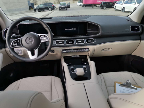 20款奔驰GLE450加版用的是贯穿式中控台双屏设计,12.3英寸的双液晶显示屏带来的科技感爆强,并且搭载了奔驰最新的MBUX人机交互系统,采用搪塑,皮革,实木,金属和碳纤维材质,三幅式平底方向盘动感十足,头顶一个全景天窗,座椅用的是双色搭配的运动风格座椅,舒适性和包裹性也比较好。