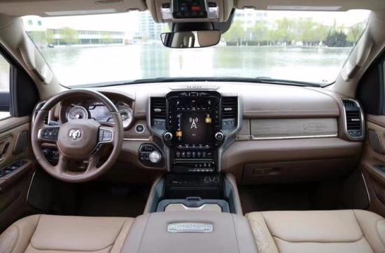 道奇公羊长角号做工则完全摆脱了美式的粗糙感,边缘、接缝都处理的很精细。真皮座椅各自独立,配有加热、按摩等舒适功能,每个座椅独立配一个操控手柄,各项功能由乘坐者自己控制。道奇公羊皮卡车型全部座椅均采用真皮包裹,前排还配备了十分实用的运动座椅。
