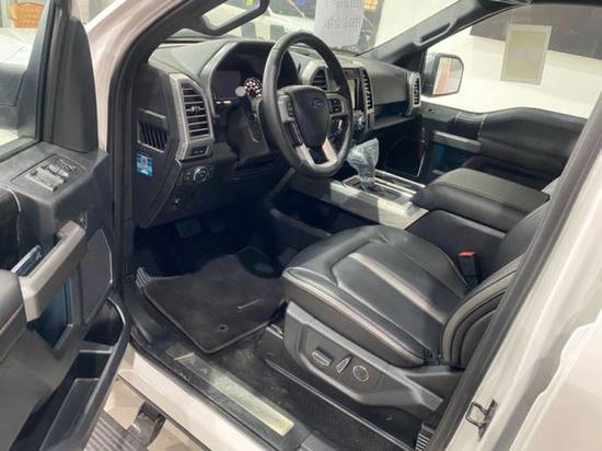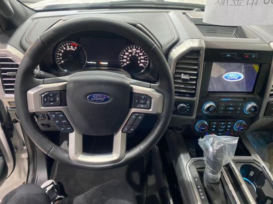 福特F150车内配备标准独特的皮革和布艺装饰的座椅,驾驶员侧的电动十向调节。这些座椅同时具备记忆功能。中央控制区搭配了触控式显示屏,其下方则是多媒体控制区及空调面板,采用旋钮+物理按键的组合。中控功能区域可分为三个小控制区,最上端为音响控制及导航控制,中间为收音机调节控制,最低端为空调及座椅加热控制。