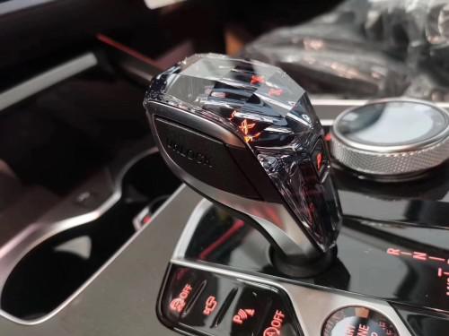 20款宝马X7一改以往的商务风、运动风,展现出来的是科幻一般的场景,多功能方向盘的按键操控区域周围加装了液晶设计,仪表盘和显示屏就更不用多说,仅仅是灯光效果,就令人为之一振。还有一个亮点就在于水晶档把,在氛围灯的照射下更加科幻,完全不是同级别能够相比的。