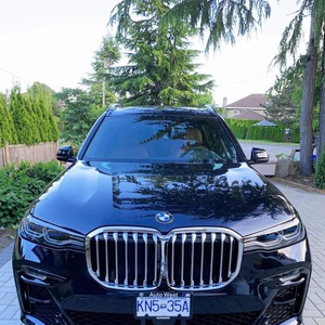 宝马X7 (配置|询价)外观高度还原X7iPerformance概念车设计语言,前脸配备硕大的双肾进气格栅,“天使眼”大灯组造型极为修长且采用开眼角设计,内部配备激光光源,最大照射范围可达600米。前保险杠中央为ACC自适应巡航传感器,两侧LED雾灯组与通风口融为一体,疏导气流的同时还可以为刹车系统进行散热。