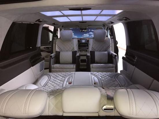 迈巴赫加装配置:新款迈巴赫19寸轮毂、迈巴赫大包围+竖条中网+侧裙、藏蓝色羊绒地毯、小窗侧拉窗、全车镀铬套件+车窗亮条、V-class (配置|询价)大灯和尾灯、日间行车灯、顶部行李架、迈巴赫18寸轮毂、实木高光装饰件+涡轮出风口、二排奔驰原厂化妆镜、中门右侧雨伞桶+迈巴赫雨伞、全车内饰镀铬装饰套件、四门奔驰原厂中控锁、全车内饰真皮包覆、曲面九宫格顶灯、奔驰原厂分体休息脚踏、四门镜面迈巴赫迎宾踏板、咖啡真皮仪表台、台湾皮诺基手动窗帘、进口翻毛绒顶棚、行政会议桌、12.1英寸后排头枕娱乐屏、前排扶手箱加12L温控冰箱、前排电动座椅带通风加热、迈巴赫旋转电动航空座椅奔驰原厂开关、第三排180°电动沙发床奔驰原厂开关、后排折叠小桌板、倒车影像