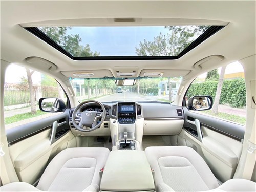 20款酷路泽5700VXR内部空间也非常充足,操控台没有过于繁杂的操控按钮,但却凝结了越野车型在简洁之间将所有功能集结于其中的驾驶乐趣。除了各处良好手感的软质材料外,在中控台的面板换成与内饰新色系更搭的黑色钢琴烤漆材质。