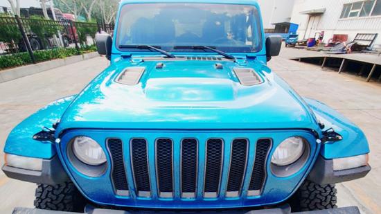 2020款JEEP硬派越野车牧马人2.0T车外后视镜的壳 体上设计了两排LED灯组,目的是为了弥补侧面的照明,视觉效果很有型,不知道实际照明效果如何。这是一辆吸取战斗机元素而设计的牧马人,发动机舱盖上的两个加特林机枪其实是进气口。
