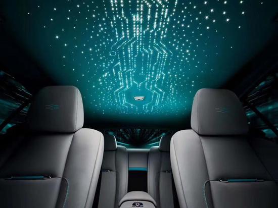 内饰部分,劳斯莱斯则为这辆魅影Kryptos Collection特别版增添了更多“密码”元素,最为耀眼的当属与外观相同的青绿色星空车顶,同时光源的排布也采用类似电路的排布,视觉效果更加惊艳。与此同时,新车还在包括副驾驶前方面板、门板等处加入了以摩斯电码的“点”和“横”为灵感的装饰,而同样的设计元素也同样出现在头枕上,作为新车的特殊标识。