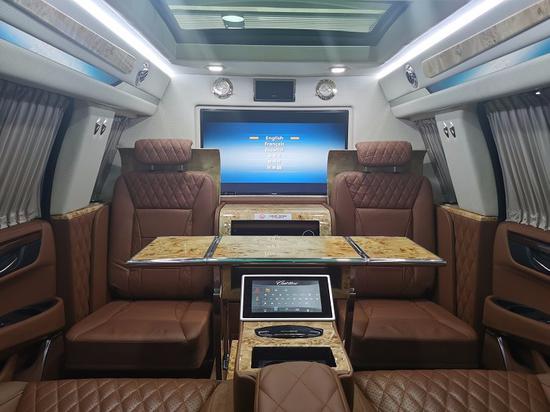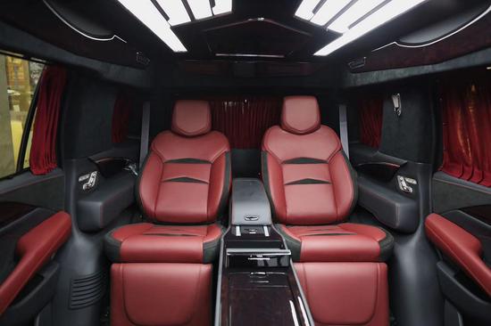商务加长5.98 米四座凯迪拉克拉克总统一号是空间感私密感都有很好的突出,后背箱储物随心所以。动力上搭载的是一款6.2L V8发动机,匹配10速变速箱,让驾驶随叫随到,大面积的雀眼枫木装饰使内饰奢华感倍增,在吧台下方有一张隐藏式电动商务会议桌是您办公的理想座驾;