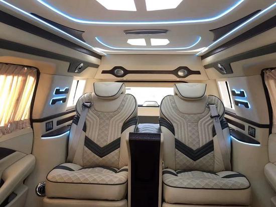 商务加长版5.98米四座凯迪拉克总统一号加长尺寸是5900毫米2045毫米2090,加长部分可是实打实的都用在了轴距上,车内空间宽敞到了极致。车内乘客丝毫没有局促感,伸展自如,充分享受大空间带来的便利。凯迪拉克总统一号还加装了前后包围套件,使得整车外观在霸气至于有了运动感。