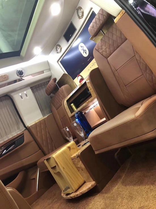 越野加长版5.98米四座凯雷德总统一号升降一体化的40寸液晶电视,还可以联接网络,车内配备有4G无线WIFI路由器,购车后你可以处理一张流量卡,你的车子就会有WIFI网络,就像家里相同,手机也可以用,非常便当,有的老板喜欢看新闻,这样便于老板出差也能随时收看到新闻频道。