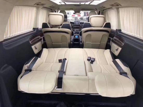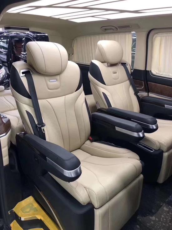 20款奔驰V260L迈巴赫订制版商务车第二排航空座椅为带电动、加热、按摩、通风功能的航空级首长席,可沿着地面上滑轨实现一键电动式前后滑动,对于这种智能化的乘坐体验,是原厂车型笨拙的手动拖拽模式所望尘莫及的。