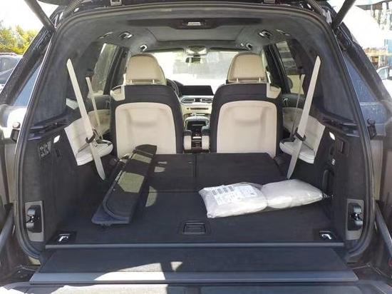 2020款加版宝马X7 M运动 卓越豪华顶配 车身尺寸用一个字形容就是“大”,那是真大,将5.2米的车身长度相当霸气,车身侧面线条笔直棱角分明,看起来就像一头巨兽,充满力量感,车身尺寸长宽高分别为5163*2000*1805mm,轴距达到3105mm,甚至比路虎揽胜 (配置|询价)还要大,车身自重达到了2.4吨,俨然一副硬汉的气息,给人一种极强的视觉冲击力。作为一款长度超过5米的SUV,内部空间自然也是无需担心,3+2+3的座椅布局,无论是家用还是商务用车,都能满足消费者的需求。