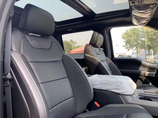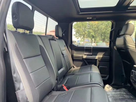 19款福特F150猛禽皮卡真皮座椅包裹性很强,无论是越野还是长途旅行,都很舒服,丝毫不感觉到这大家伙的压抑,二排空间也是十分宽敞,乘坐四至五个身材高大的乘客绝对没问题。座椅折叠起来可以放一个冰箱,而且门上储物格空间也是够用,虽然不像公羊后排那么豪华,有简易床,但是这种实用的理念就是福特的宗旨。(更多车型价格配置详情致电文章底部联系方式)