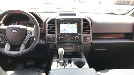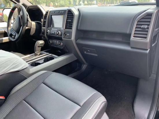 19款福特F150猛禽内饰中控台部分辅以银色饰板装饰,六指针仪表盘的设计有些后工业时代的复古风格。采用带电冷热功能的可记忆式皮革座椅,头枕四向可调,搭配铝饰条和黑色钢琴烤漆内饰。可电动升降的后窗带隔板和电热除霜功能。车内配备标准独特的皮革和布艺装饰的座椅,驾驶员侧的电动十向调节。这些座椅同时具备记忆功能。中央控制区搭配了触控式显示屏,其下方则是多媒体控制区及空调面板,采用旋钮+物理按键的组合。中控功能区域可分为三个小控制区,最上端为音响控制及导航控制,中间为收音机调节控制,最低端为空调及座椅加热控制。在内部空间的庞大基础上,福特也提供了非常具有舒适性与服务性的内饰配置。另外,新车还配备了一块大尺寸的全景天窗。(更多车型价格配置详情致电文章底部联系方式)
