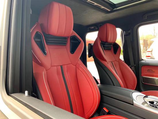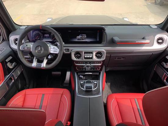 全新G63内饰方面,新G63保留了新G500的整体设计,除配色差异外,新车还换装了全新造型的平底式AMG运动方向盘,其两侧配以打孔皮质包裹,下部镀铬装饰的造型也与新G 500明显不同,看上去十分战斗。此外,全液晶仪表盘+中控大屏的双12.3英寸屏幕设计在新车上也没有缺席,营造出了浓郁的科技感。