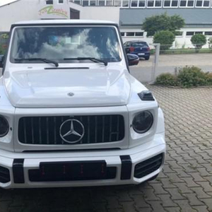 全新20款奔驰G63 (配置|询价)全新一代奔驰G级 (配置|询价)保留了延续39年的经典方盒子造型设计,硬朗的线条、出色的越野性能让它成为了很多消费者心目中的Dream Car。与上一代车型相比,它的外形做了一些调整,比如前格栅换装了三横幅式装饰,更换上全新的LED大灯,保险杠的设计也有明显的变化。据悉,它运用了全新的钢铝混合结构,质量相比现款车型下降170kg,但车身刚性却提升了55%。