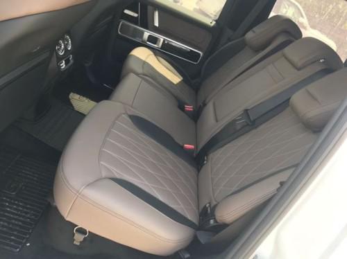 G63后排的腿部空间,相比之前车型得到了非常明显的提升。另外前后座椅的触感与舒适性以及后排座椅的倾斜程度均进行了升级,在配上标配的64色氛围灯,让这辆全新G63可以在长途旅行中提供更为舒适惬意的环境。