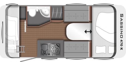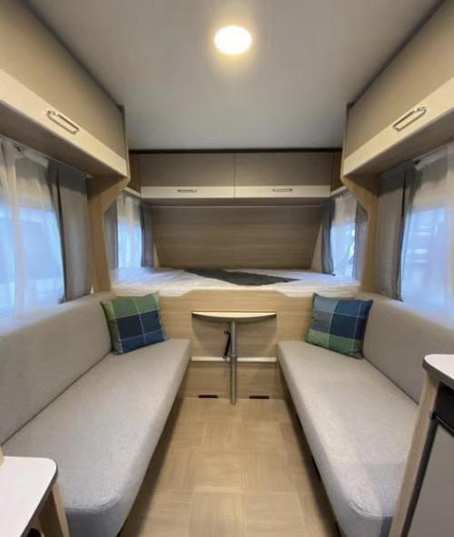 车内还标配:12升淡水箱和双能源强制空气加热器。Sassino 460 E和470 K高2.61米,站立高度为1.98米。为了在470 K上配备双层双层床,以提供足够的空间,LMC将桌子集成在高架弓形固定床的地板上。如有必要,拉出桌子并折叠腿。餐桌椅和前床下的盒子提供储物空间。