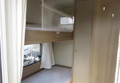 与厨房一样,起居区和就寝区的内壁单元也被一个非常宽的挡板关闭Sassino 470 K型号更长,达到了7.18米。最多可容纳六个人。LMC在家庭中很适合在家庭中使用,它在后部建有双层床。车头的双人床为1.95米x 1.52米,后排的双层床为1.95米x 0.63米,转换后的扇子的躺椅区域为1.88米x 1.22米。