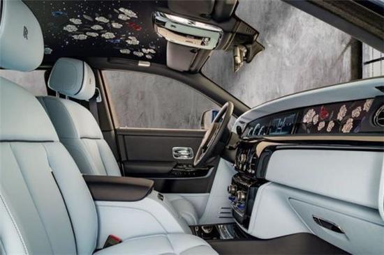 这是一辆定制的2020款劳斯莱斯幻影轿车, 仅从外观看,它与普通的幻影轿车并没有太大的不同,而当你打开车门的那一刻,你才会惊叹什么才是真正的奢华,原本工业化的交通工具俨然已变身为一座梦幻般的“玫瑰花园”。
