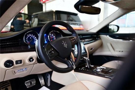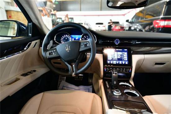 内饰采用了高品质的实木和真皮材料。仪表台、中控台和车门的优美造型及流畅线条完美匹配,营造出奢华的驾驶氛围。引人注目的拉丝铝材边框映衬着8.4英寸玛 莎拉蒂触控屏,用户可以通过它方便地操作各种信息和娱乐系统。