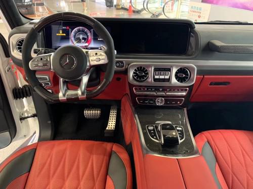 奔驰G63采用了奔驰最新的双屏幕式设计,全液晶仪表盘和中控台屏幕都达到12.3英寸。同时内饰质感和工艺都有了很大的进步。较之于现款车型,它的内饰发生了巨大的变化,融入了不少现款奔驰S级 (配置|询价)、E级的设计元素,从而变得更加豪华,而家族式的连屏设计则凸显了车内的科技感。