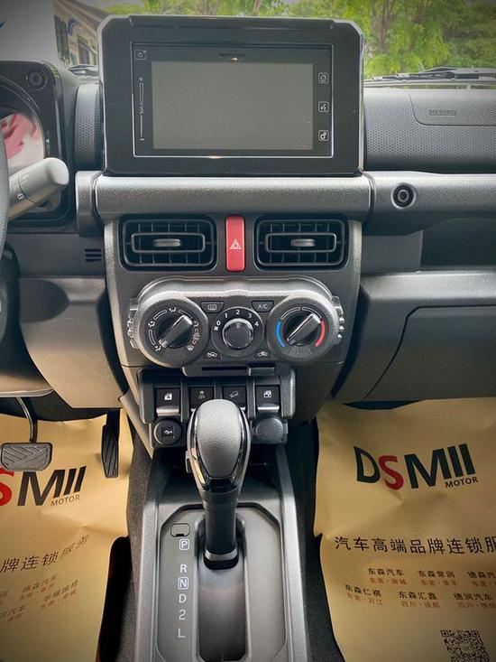 内饰上车子是织物座椅,看过它的价格似乎对这些应该有心理准备了。当然其他方面还是有进步的,质感和设计语言都更先进了。中控台的按键设计十分实用,完全着眼快速操作。而且新一代的铃木吉姆尼上还取消了老款车型的电控四驱系统,该回了机械四驱操纵杆设计。
