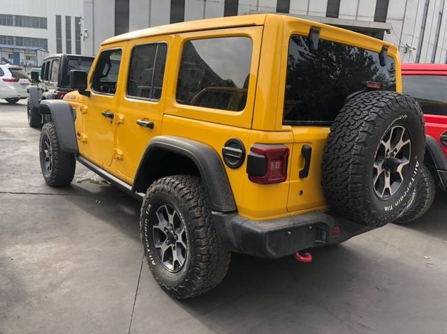 从侧面看,车身版型方正,顶部的黑色饰板和底部同为黑色的踏板形成了对照,外凸的方形轮拱气场很足,搭配上17英寸的轮胎,粗犷的视觉效果相当震撼。2019款牧马人获得了新的头灯和尾灯,夜间看起来更加独特,铝合金门,铰链和镁制摇摆门。前挡风玻璃向后倾斜以获得更好的空气动力性能,车窗略大,后备箱安装的备用轮胎降低了位置,以提高后方视野。