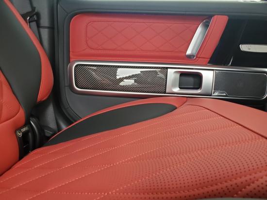 沿用多年的四辐式方向盘也改为三辐式设计,三点以及九点处的多功能按键也与S级 (配置|询价)车型相同,两侧黑色触控按键可以控制仪表盘信息,其中行车电脑和右侧模拟仪表都可以进行切换,可显示油耗、续航里程、车辆状态等信息。在内饰用料方面,奔驰全新G级内部均采用了真皮材质包裹,手感极佳。在副驾驶台上还增加了碳纤维扶手,保护了车内人员在行车时的安全性。