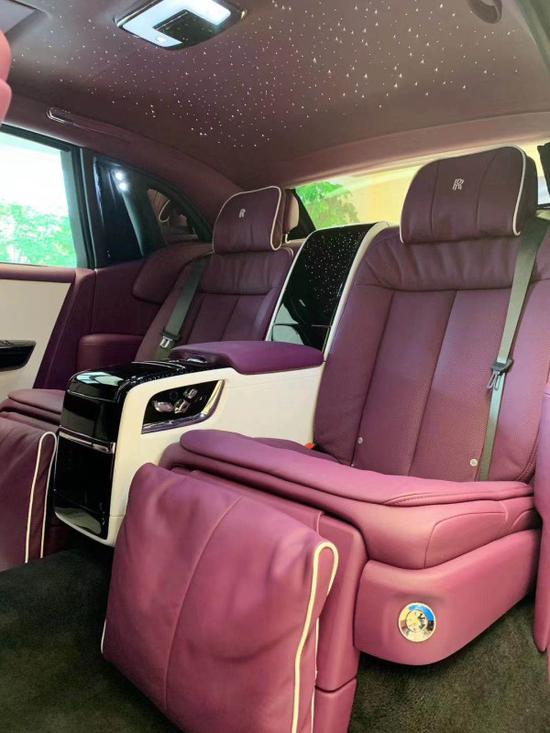 劳斯莱斯幻影电动折叠板和后排影院系统被巧妙的隐藏在前排座椅的椅背后,只需轻触按钮,便可以自如收放桌板和影院系统,带来完美的剧院体验。后排中央固定扶手做了重点优化,其中国可容纳带有威士忌酒具的酒柜、香槟酒具和冷藏箱,方便乘客畅快交谈,后排座椅角度可以任意调节,这一设计让客户无需转头便可视线自如交流。整个车厢内饰全部以最精美的高档材料装饰,使车内极具触感。