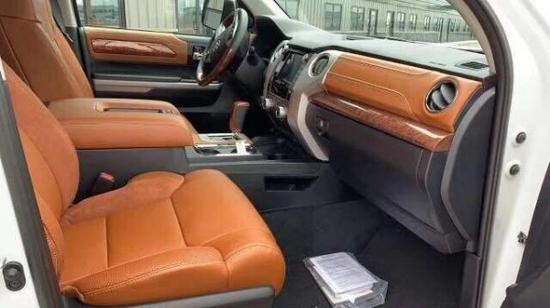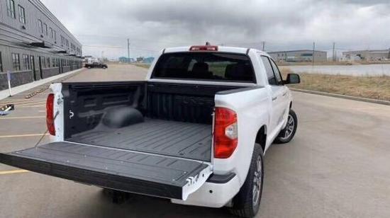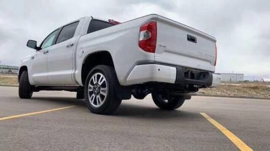 20款丰田坦途TRD版皮卡的车头前脸造型上更加硬朗,粗壮的横幅格栅展现出极其坚实的力量感,宽大硬朗的车身,粗犷有力,凸显美国车的风范,前脸明显外张的挡泥板以及前突的坚固格栅尽现强悍风格。