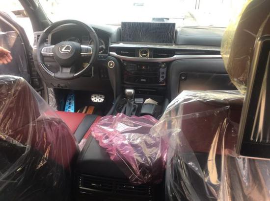 20款中东版雷克萨斯LX570 SuperSport S(超级运动版顶配):雷达测距、抬头显示、换挡拨片、铝制行李架、限量包(前后大包围、黑色大中网、钢制油门/刹车脚踏板、车门迎宾灯)、S限量花纹脚垫、后包围镀铬、镀铬尾喉、外置拖车钩、138升双油箱、遥控启动、车身防擦条、副驾驶灭火器、流水转向灯、金属漆、Logo地射灯、21轮、冰箱、天窗、智能卡、电眼、环影、后娱、底盘升降、前座椅通风加热(真皮)、导航、多功能桃木真皮方向盘、桃木内饰、航空照明脚踏、LED 氙灯、大灯清洗、迎宾灯、四区空调、三排电动、电尾门、ACC自适应巡航、后座椅通风、车道保持、并道辅助、二排遮阳帘、马克莱文森音响、后牌照盖带LED灯…