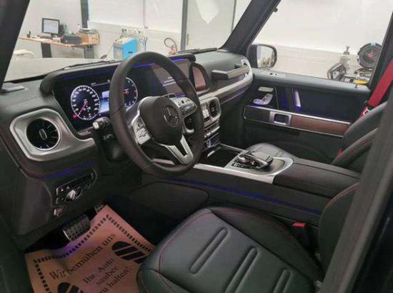 配置:2020款欧规奔驰G500 黑/黑 免豪车税!3C手续,2020年4月份出厂配置:AMG包(AMG样式前后裙、20寸AMG合金多辐轮毂、加宽翼子板、运动方向盘(选配方向盘加热后方向盘是圆的)、AMG脚垫)不锈钢包(不锈钢侧踏板、不锈钢备胎罩带3D奔驰车标)泊车包(泊车雷达、倒车影像)12.3寸双液晶大屏滑动天窗方向盘加热隐私玻璃红色安全带,车门饰板、中控、仪表板等红色内饰缝线8色氛围灯标配略。
