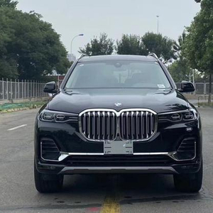 新款宝马X7外观方面,全新宝马X7不仅延续了宝马家族式的设计,也添加了不少全新的设计,车头宽大厚重,前脸标志性双肾型进气格栅做了加大处理,直瀑瀑型中网周围包裹宽大的饰条,不仅辨识度高攻击力也是非常强的,两侧连接大灯组,外观做了开眼角处理,上下两条LED日间行驶灯做了上下眼眉,两组大型的远光灯被箭头式造型勾勒,下面的进气口采用大嘴式设计嘴角连接L型雾灯区,有种嘴角上翘的而感觉,远远望去非常有威严。