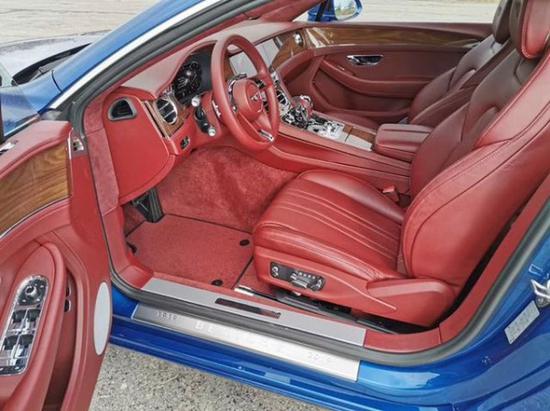 20款宾利欧陆 4.0T GT价格¥285.00万颜色亮片蓝/红类型欧版-现车车架号0001车源所在地展位现车配置2020年款GT V8亮片蓝/板球 红配置: 五座,舒适包,百年包,氛围灯,翻转屏,宾利刺绣。
