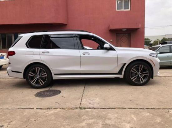 2020款宝马X7 (配置|询价)采用了全新的设计语言,对于宝马经典的双肾进气格栅,在面积上扩大了很多,几乎占据了X7的整个车头,看起来十分霸气,而且X7对前脸大灯组还进行了升级,车头大灯采用的是矩阵式激光大灯,无论是视觉上还是照明度上都得到了很大的提升,因为是7座车,X7的车身侧面看起来非常长而且厚重,有些类似于路虎的设计风格,大量的平直线条装饰着X7的车身,让这款车的霸气程度提升了很多,车尾的设计则是非常简洁,车标下一条贯穿式的镀铬饰条将车尾一分为二,层次感比较分明,尾部排气造型为双边单出式排气,具有一定的运动感。