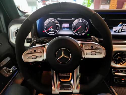 20款奔驰G63 双12.3英寸高清屏,虚拟仪表盘与中控液晶屏融为一体,视觉上形成一个宽屏驾驶舱,中部的涡扇式空调出风口也颇具设计感,还大量采用了皮革的包覆。