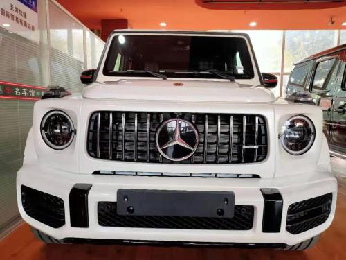 20款奔驰G63 (配置|询价)AMG动感又独特的外观造型设计,经过重新设计的前进气格栅与两侧圆形大灯相互呼应,整个前脸的造型更为抢眼。进气格栅的多幅式镀铬采用了镂空的设计,保险杠也经过了重新的设计,让新款大G63的前脸看上去更为粗犷,氙气大灯下方还增添了时下流行的LED日间行车灯设计,看起来更具时尚感。