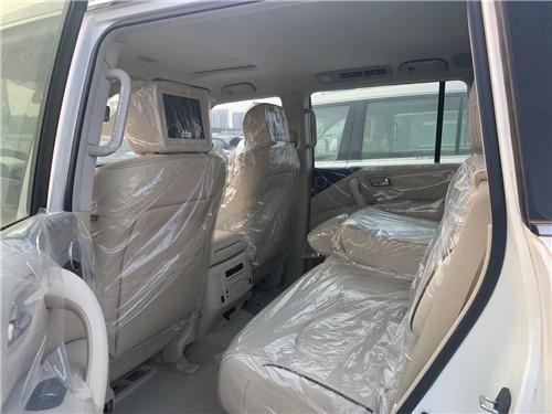 19款尼桑途乐OPT版乘坐空间十分充裕,前排横向空间和纵向空间都非常充裕,座椅宽大厚实,低配采用织物材质,高配车型为真皮包裹,途乐Y62给中间座位同样配有头枕头,并在扶手箱内设有两个杯架。前排支持腰部支撑调节,新车第排空间相当充裕,此外还可以放倒,Y62全系中央扶手箱设有冰箱功能,夏季在也不用担心没有冷饮了。