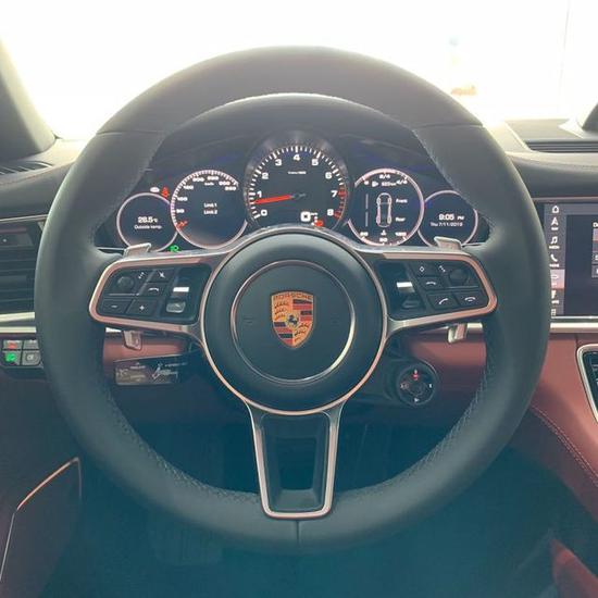 保时捷帕纳梅拉内饰经过彻底的全新设计,同时保留了保时捷的典型特征,中控台向车头方向升高,仪表盘呈扁平,显著加宽,模拟转速表被设计在仪表组的正中央。控制理念也随即升级,中控台采用玻璃外观,12英寸的触摸感应按钮更便于操作。