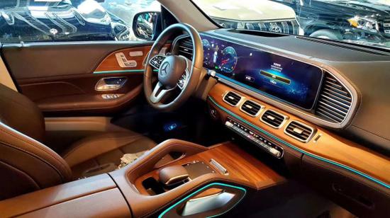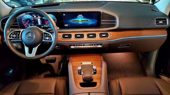 2020款加版奔驰GLE450 内饰则延续了现款S级 (配置|询价)的造型,用的是贯穿式中控台双屏设计,12.3英寸的双液晶显示屏带来的科技感爆强,并且搭载了奔驰最新的MBUX人机交互系统,采用搪塑,皮革,实木,金属和碳纤维材质,三幅式底方向盘动感十足,头顶一个全景天窗,座椅用的是双色搭配的运动风格座椅,舒适性和包裹性也比较好。