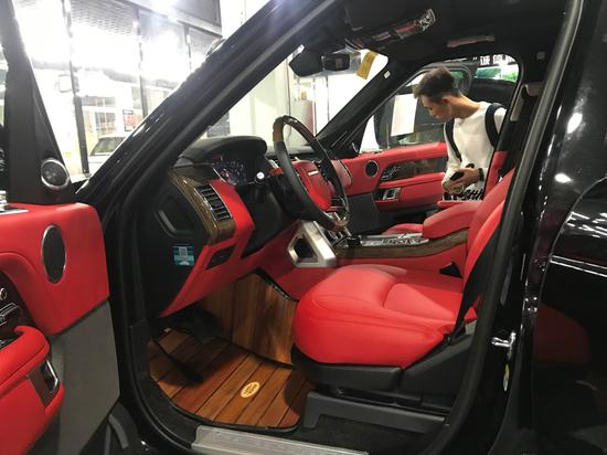 改装:创世干椒红内饰 鹿皮顶 电踏 21寸悬浮轮毂 创世套件 实木路虎脚垫