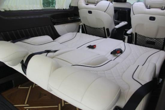 进入奔驰威霆7座改装后舱,立刻就会被它的豪华绚丽而征服,整车环保真皮包裹,游艇级柚木地板铺设,豪华感无处不在。全部采用真皮制作,豪华木饰装点,带有按摩加热通风功能。后舱前为两个独立航空座椅,第二排座椅安装进口首席航空座椅,加热通风按摩功能齐全,最大限度的减缓您的乘车疲惫。八向电动调节:电动头枕,电动腿托,前后电动调节,电动靠背调节。第三排为一组沙发座椅(可电动展平,形成一张舒适的沙发床)。