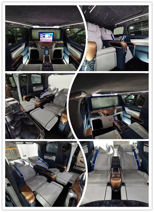 蒙娜丽莎和风系列采用5门4座MPV整车布局,后舱后排独立两座与前舱全隔断商务洽谈私密空间,配备前后舱即时对讲手提电话,座椅扶手多功能键区及隐藏式行政大桌板,整舱氛围灯、阅读灯及前方隐藏式升降电视等娱乐系统。双侧电动侧滑门及电动后尾门,360度环车影像,随动转向大灯。
