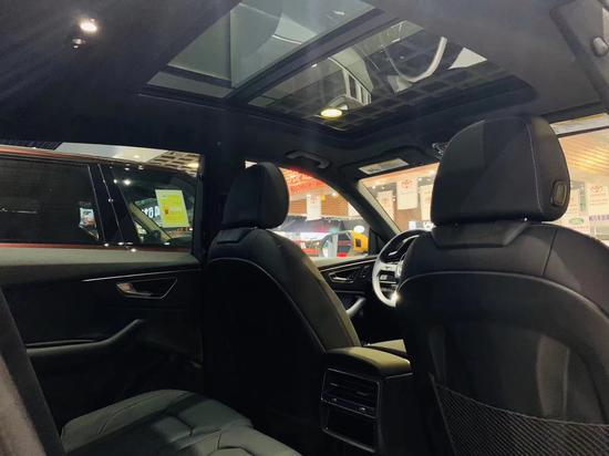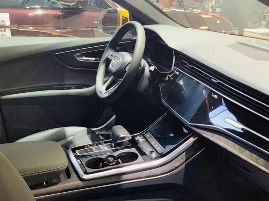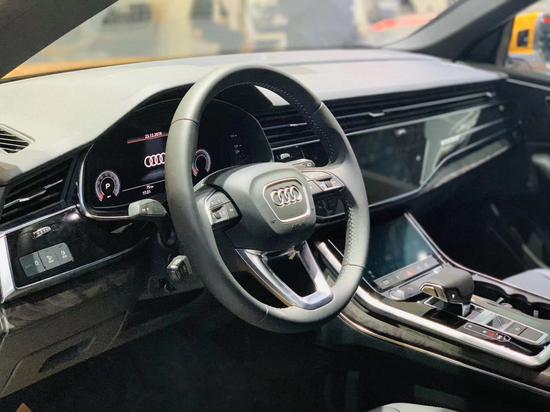 车厢内部,会感觉奥迪Q8和全新A8 (配置|询价)的设计高度雷同。奥迪全新家族化设计,科技感十足的虚拟驾驶舱氛围,同样的三块大屏,横向贯穿的前排空调出风口。中控台采用大面积的真皮包覆,且向驾驶员一侧倾斜,形成以驾驶员为中心的驾驶舱。整个中控采用了全触屏来对车辆进行操控,没有一个实体按键,对技术要求极高,非常的高大上。