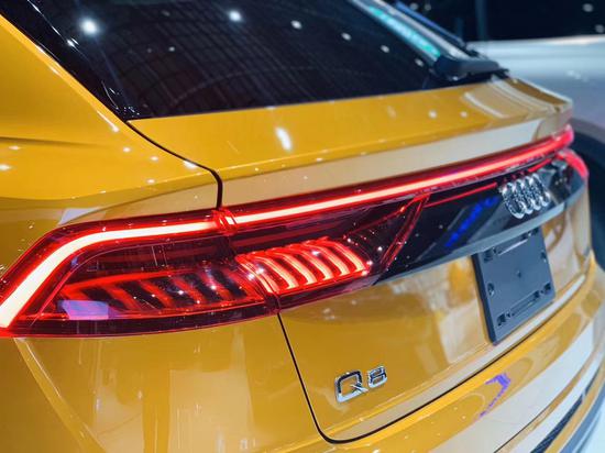 新车外观采用最新的家族式设计,前脸采用了8边形进气格栅,内部为直瀑式造型两侧,尾部上,奥迪Q8的造型还是比较的别致的,溜背式的后备箱造型加上车尾隐藏式尾翼设计,整体都是主打着运动的元素,而贯穿车尾的LED后尾灯点亮后也是非常的漂亮。