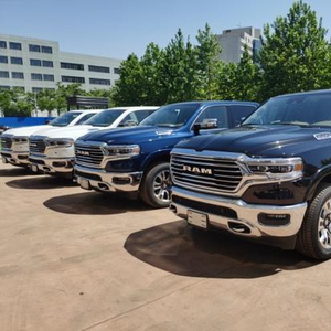 道奇公羊大角牛外观设计极具冲击感,前倾式车头,相较中规中矩的家族设计无疑多了几分对路面的侵袭感。车内氛围堪称豪华,绝对可以媲美高级轿车。眼神中没有透露出一丝的活泼神韵,唯一展现出来的只有凶狠。前杠是铁质前杠带拖钩,散发这金属气息,沉稳大气;作为最畅销的车型拥有着极富侵略性的前脸。
