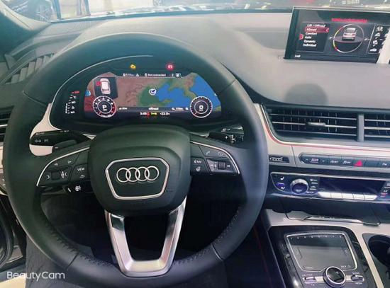 奥迪Q7的内饰造型是典型 奥迪风格,原料高级、做工精密,真皮座椅、前排中心扶手也由分体变成了全体扶手。多功用方向盘在中心区块选用更多圆形线条规划,全体看起来更细巧,手感也愈加。