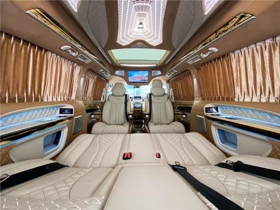走进车内直接来看看内饰,这款奔驰V级商务MPV在内饰上的个性定制可以说是翻天覆地了,和奔驰V级原型车相比已经是另一台车子了。