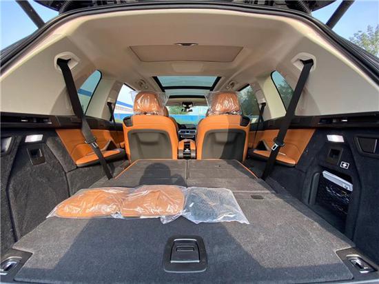 20款宝马X7的第三排为两个常规座椅,支持一键便捷进入,提供照明灯、杯架等常用配置。后备箱方面,宝马X7配置同样齐全,除包括基础的照明灯、电源、锚点以及挂钩外,还配有后两排座椅的一键放倒、打开功能,大幅提升了使用便捷性。